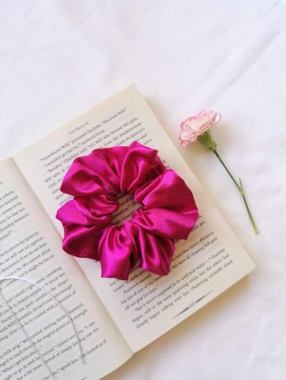 Add a pop of elegance to your everyday style with our luxurious silk scrunchie in a bold fuchsia pink. Made from smooth, glossy fabric, this scrunchie is designed to: